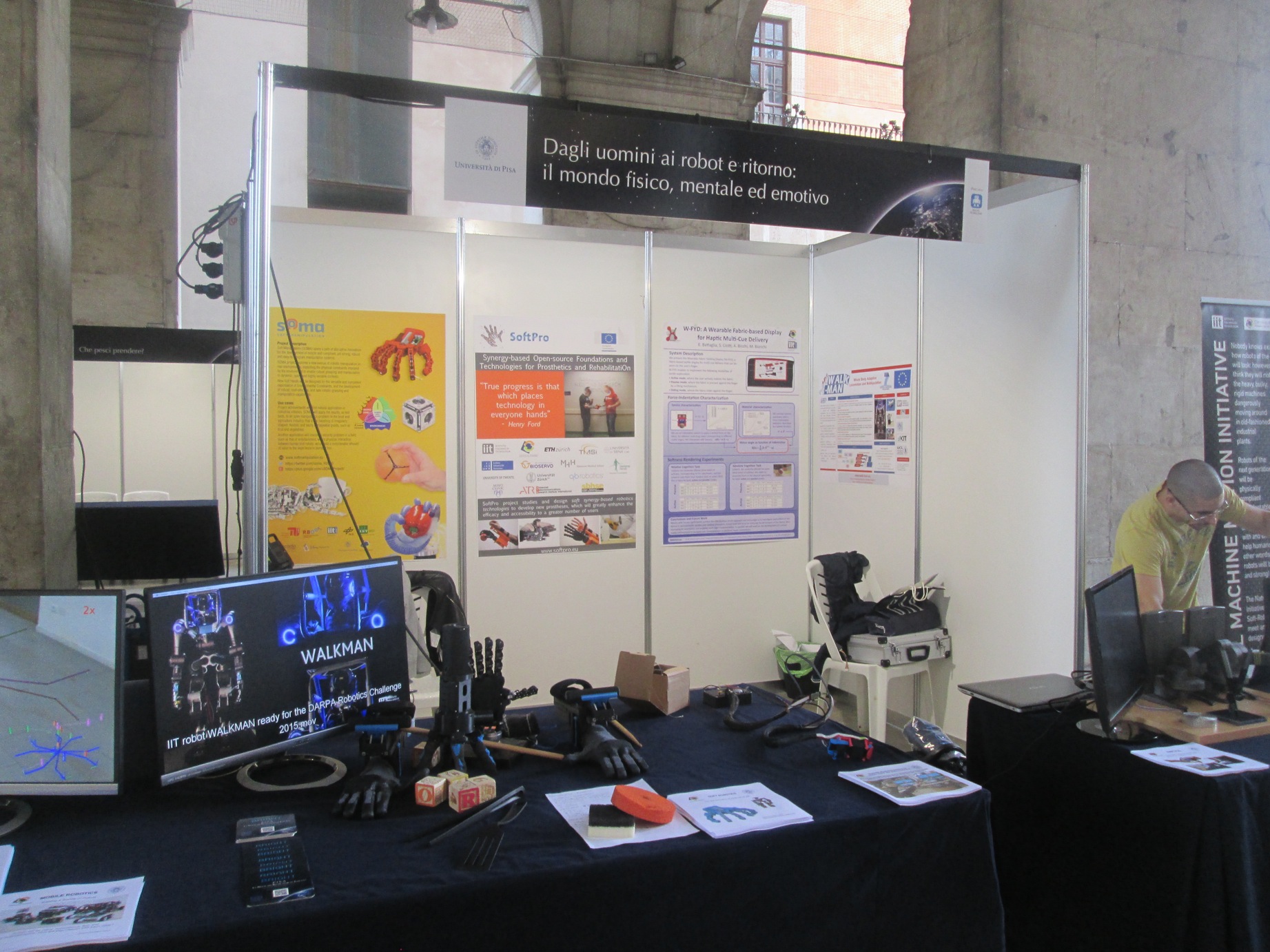 SOMA project and the Softhand at the Centro Piaggio booth at the Researchers Night in Italy, September 30, 2016