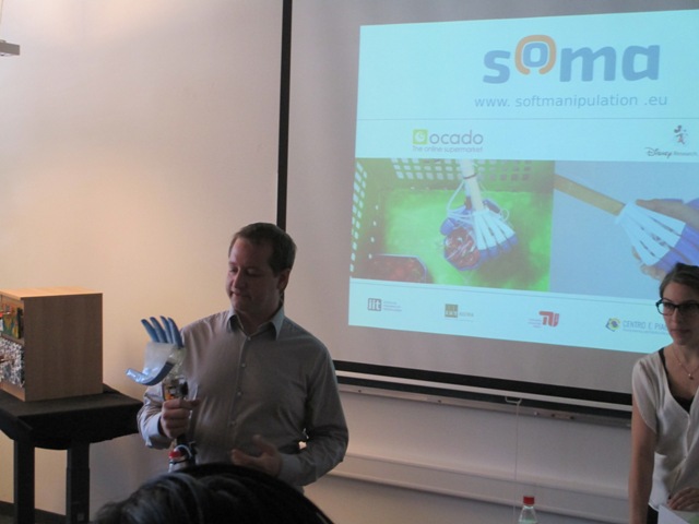 The Robotics & Biology Laboratory, headed by Oliver Brock, focusses on research in mobile manipulation. The group develops solutions for mobile manipulation that tightly couple various aspects that traditionally were considered separately (e.g. hardware, planning, control, perception, etc.). The concept of interactive perception, for example, considers perception and manipulation as inseparable components of a single problem, leading to novel solutions both in perception and in manipulation. And the lab’s grasping research combines the development of novel hands with associated planning and perception algorithms. The lab will present the resulting mobile manipulation capabilities in various demonstrations, amongst them a demonstration from the Physical Exploration Challenge DFG project in collaboration with the Machine Learning and Robotics Laboratory from Universität Stuttgart, headed by Marc Toussaint.